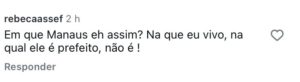 “Em que Manaus é assim? na que eu vivo, a qual ele é prefeito, não é!”, declarou uma das internautas.