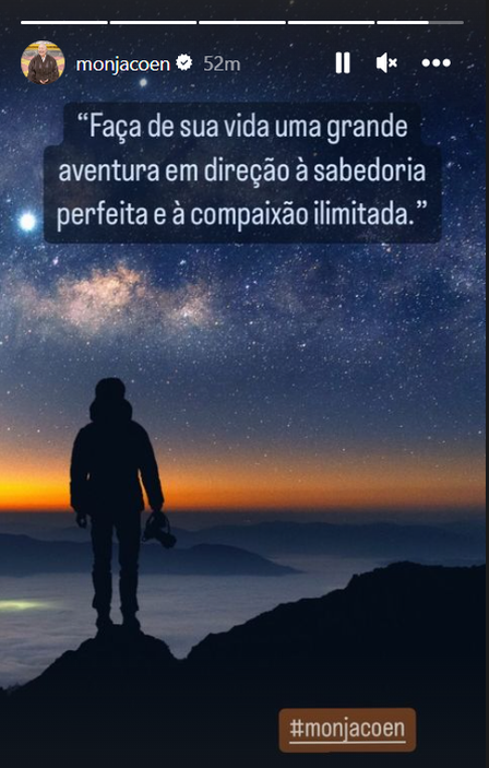 Após as críticas contra a Seleção, a Monja mandou uma mensagem de paz em seus stories do Instagram.