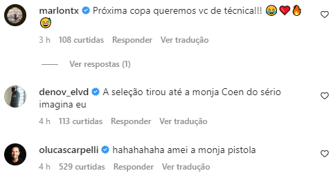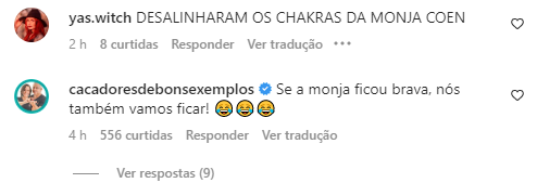 Nos comentários da postagem, torcedores ficaram aliviados quando perceberam que até a Monja estava irritada pela derrota brasileira.