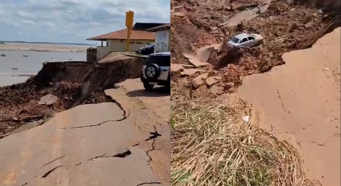 Parte de um barranco que fica ao lado do Porto da Terra Preta, no município de Manacapuru, a 68 quilômetros de Manaus, desabou na tarde desta segunda-feira (7). Um carro que estava estacionado no local foi arrastado. Ainda não há informações sobre possíveis vítimas ou sobre as causas do desabamento.