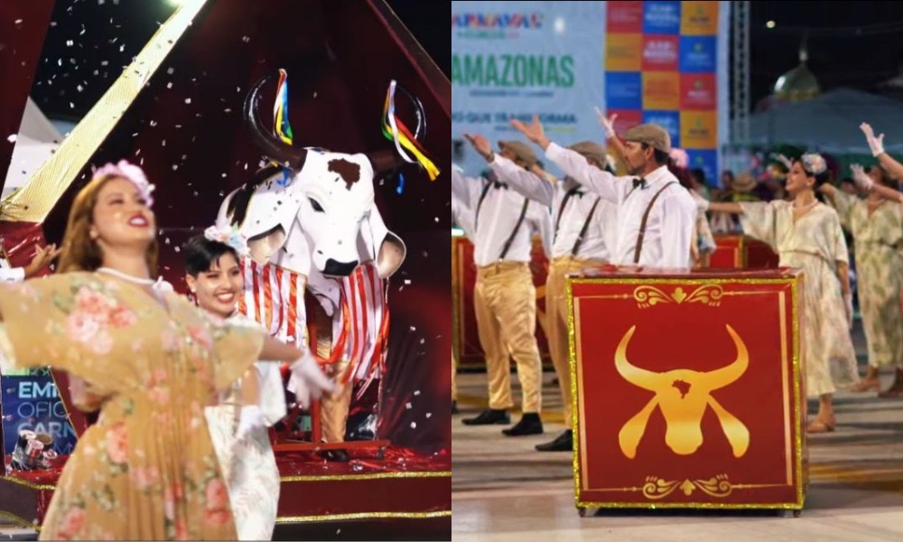 Na sequência, o Grêmio Recreativo Escola de Samba Dragões do Império levou à avenida “Corre Campo: Boi Resistência, da Arte e do Povo – Patrimônio Cultural do Brasil”, exaltando a força do boi-bumbá como expressão artística e símbolo de resistência popular.