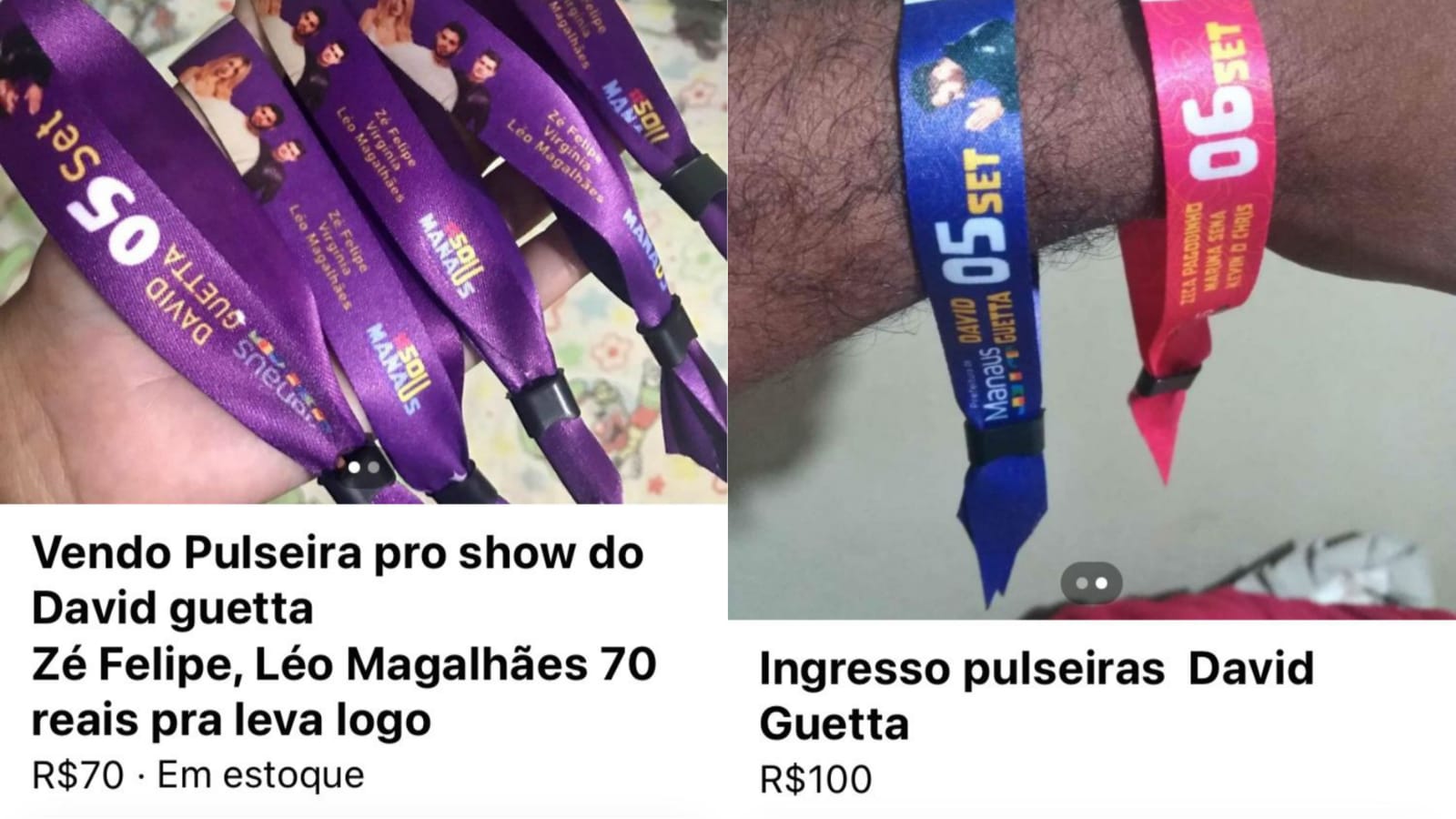Em grande parte dos anúncios, a pulseiras à venda são para o dia 5 de setembro, primeiro dia do evento, que terá o DJ David Guetta como atração internacional. Há pessoas vendendo combo com pulseiras para dois dias do evento.