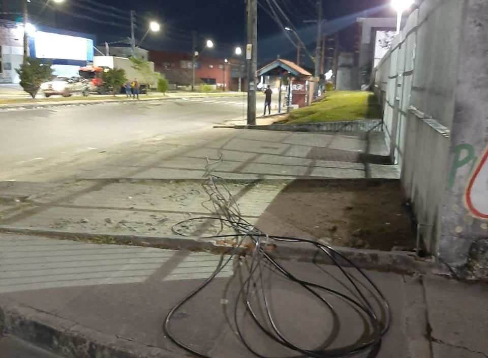 Os policiais faziam patrulhamento, por volta das 2h, quando avistaram os dois homens furtando cabos. Ao verem a equipe, um dos infratores pulou de um poste de cerca de quatro metros de altura, motivo pelo qual precisou ser levado pelos policiais ao Hospital e Pronto-Socorro Platão Araújo.