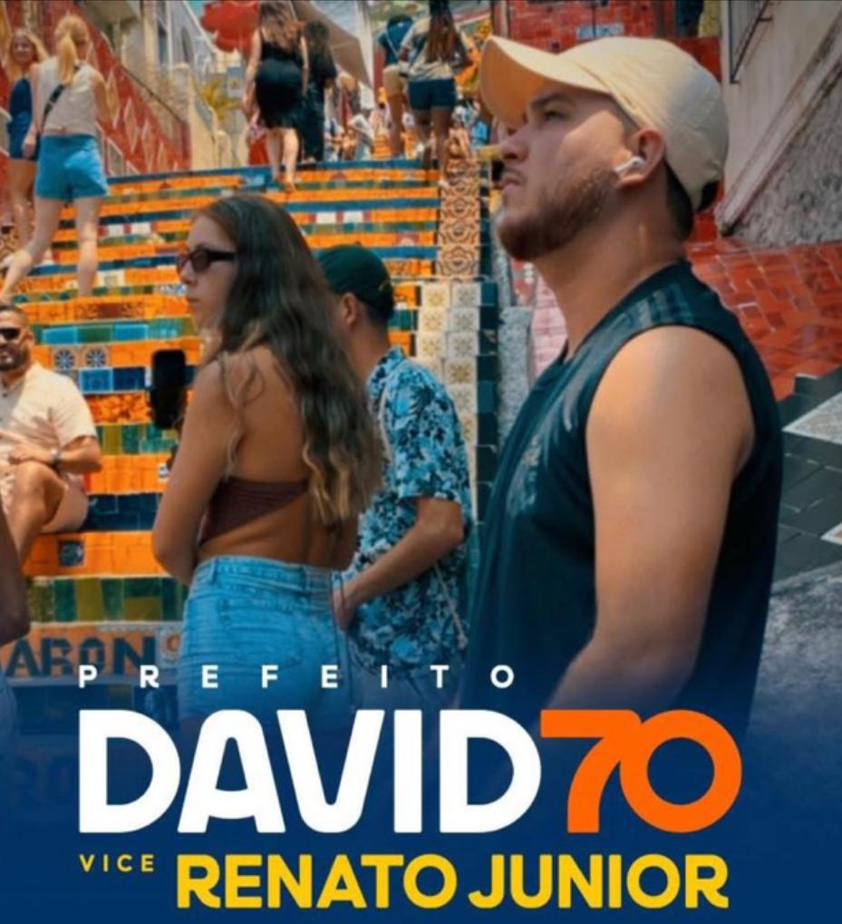 Outra imagem, postada por Jean em seu Instagram durante a campanha de 2024, exibia o empresário ao lado da arte do “santinho” de David Almeida, com apelos diretos ao voto para seus seguidores. Essas publicações, no entanto, foram posteriormente removidas após a repercussão envolvendo a contratação de sua empresa pela prefeitura.