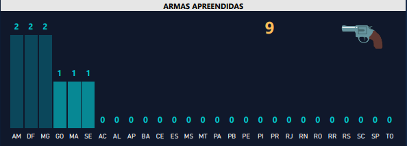 Além do Amazonas, o Distrito Federal, Minas Gerais, Goiás, Maranhão e Sergipe tiveram casos parecidos. Ao todo, 9 armas foram apreendidas em todo o Brasil. Veja o gráfico: