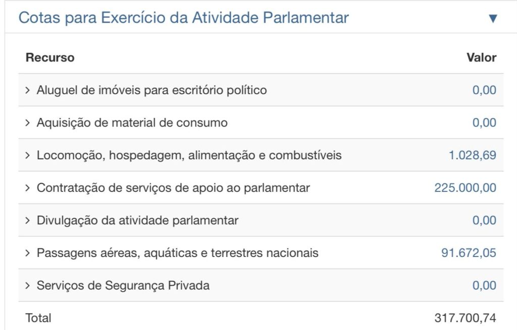 Braga também utilizou neste ano até o mês de julho, R$ 91.672,05 em passagens aéreas, sendo em maioria viagens entre a cidade de Manaus e Brasília. Os gastos mensais com passagens variam de R$ 8 mil a R$ 12 mil mensais. Na prestação de contas do senador, também consta que no mês de abril de 2022 foram utilizados R$ 1.028,69 em serviços de táxi e hospedagem.