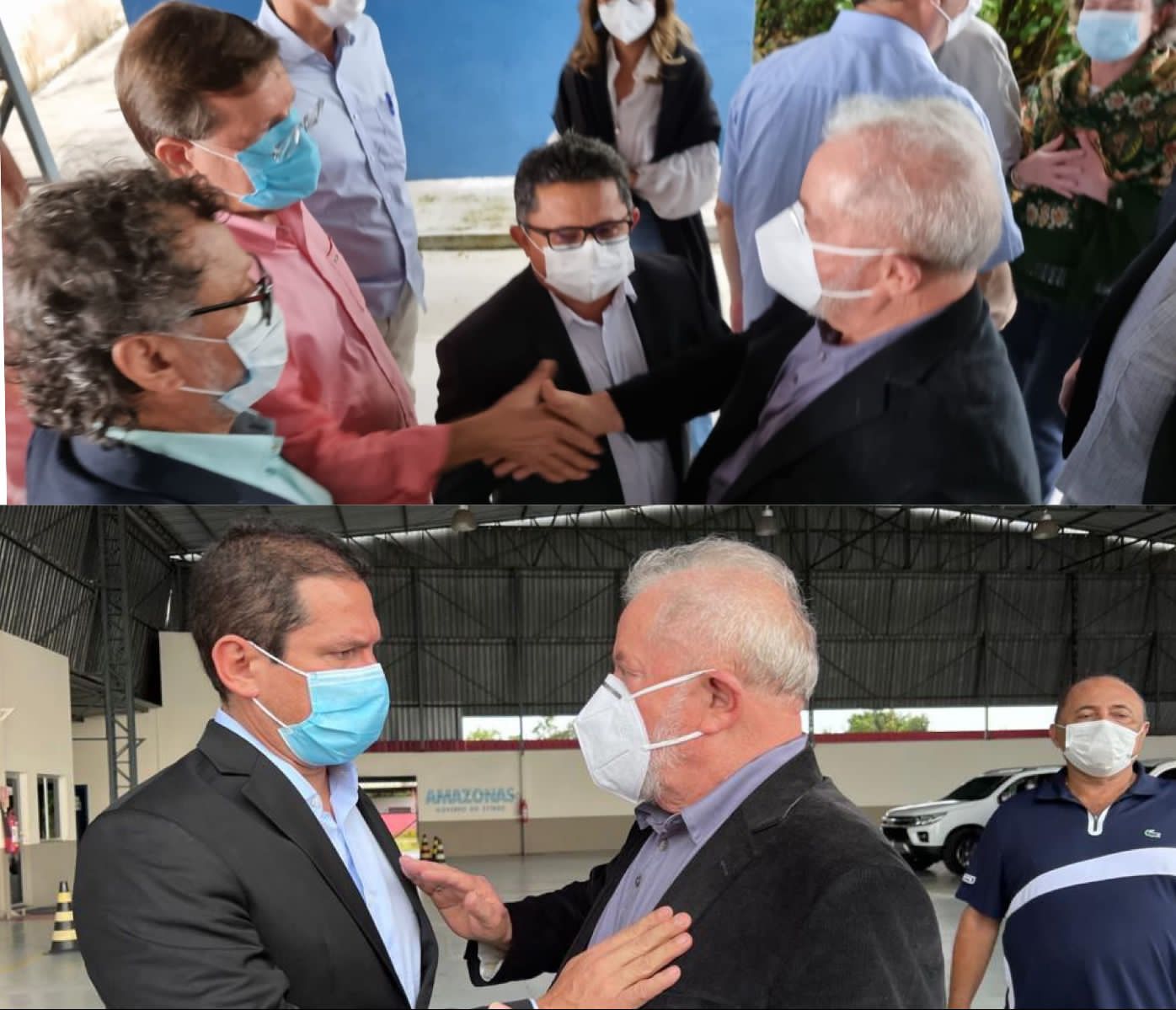 O ex-presidente da República Luiz Inácio Lula da Silva fez uma parada técnica no aeroporto Eduardo Gomes, em Manaus, na tarde desta segunda-feira (7). Durante a passagem rápida, Lula encontrou aliados políticos para tratar das eleições em deste ano, entre eles, o deputado José Ricardo (PT), o vice-presidente da Câmara dos Deputados, Marcelo Ramos (PSD), e o senador, Omar Aziz (PSD), além das lideranças do PT no Amazonas.