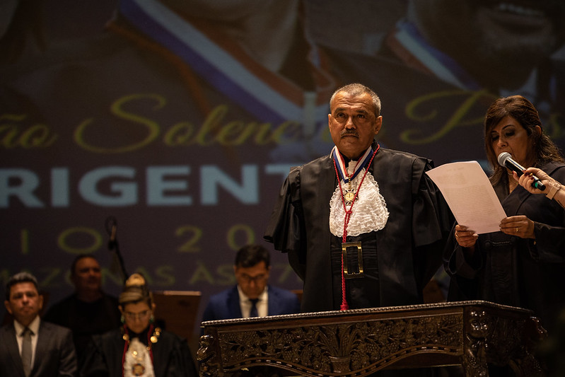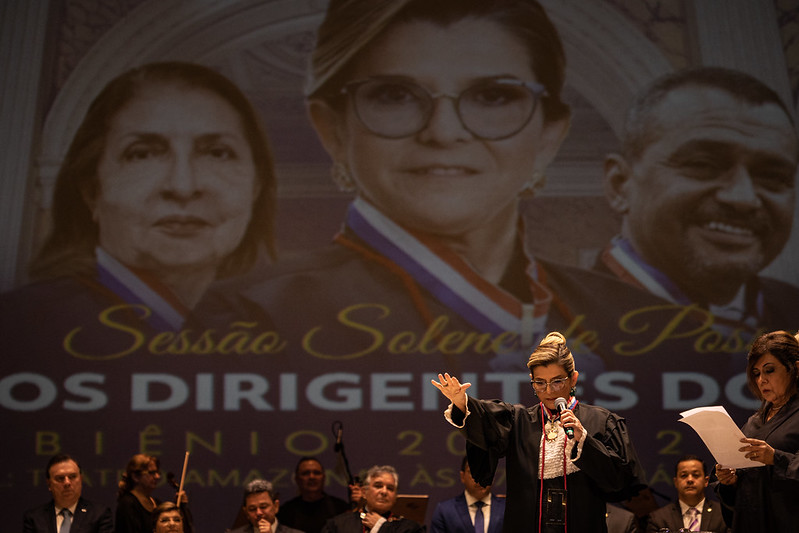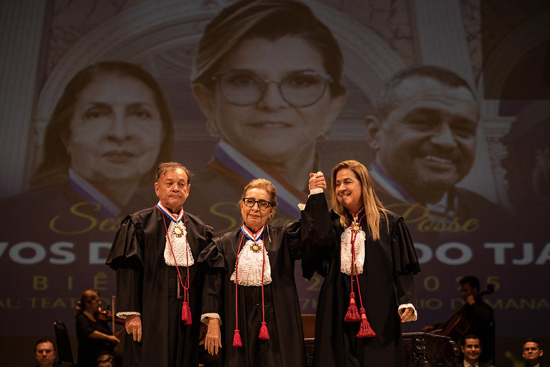 Em cerimônia histórica realizada no Teatro Amazonas, na tarde da segunda-feira (02), o Tribunal de Justiça do Amazonas (TJAM) realizou a Sessão Solene de Posse dos novos dirigentes do órgão para o biênio 2023/2025. A desembargadora Nélia Caminha Jorge assumiu a Presidência do Judiciário Estadual. Ela terá como vice a desembargadora Joana dos Santos Meirelles. O desembargador Jomar Ricardo Saunders Fernandes, por sua vez, foi empossado como novo corregedor-geral de Justiça do Amazonas.