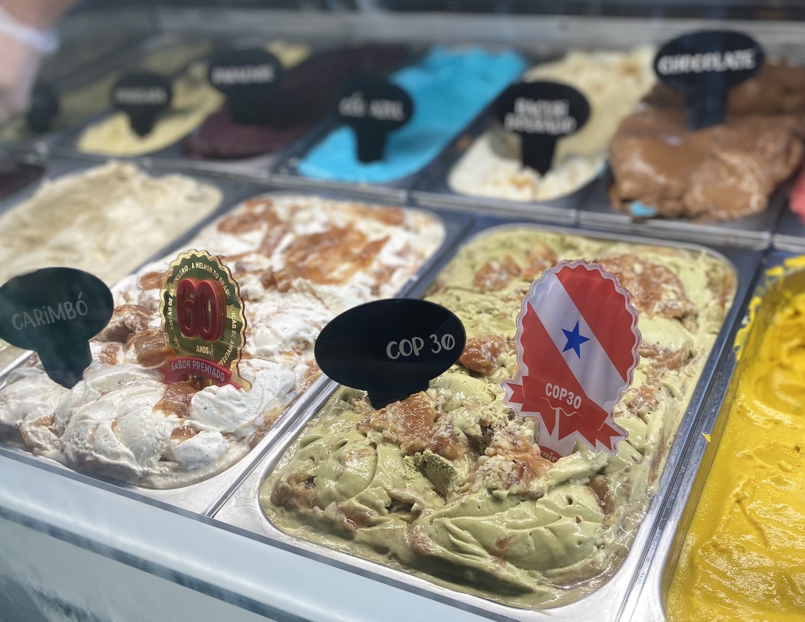 Depois do prato principal, basta uma breve caminhada pela orla do Rio Guamá para chegar à Estação das Docas e garantir a sobremesa. Lá é possível encontrar uma das melhores sorveterias do mundo, reconhecida em rankings internacionais, que atrai turistas de todas as partes com seus sabores típicos da Amazônia. Para celebrar a COP30, a equipe criou um sabor especial inspirado na ideia de “unir o que vem de fora com o que é regional”, explicou um dos atendentes. A receita combina cupuaçu e castanha-do-pará, ingredientes amazônicos, com pistache, fruto originário do Oriente Médio.