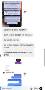 Um dos integrantes da banda “Oblivion“, conhecida por apresentações em uma casa de show bastante frequentada na capital amazonense, se tornou assunto comentado nas redes sociais, em Manaus, na manhã desta quarta-feira (16). Maike Vasconcelos está sendo acusado por um grupo de mulheres pelo crime de violência doméstica. A vítima que denunciou o vocalista foi identificada como Klissia. Vale ressaltar que a denúncia foi feita na Delegacia da Mulher, em Manaus.