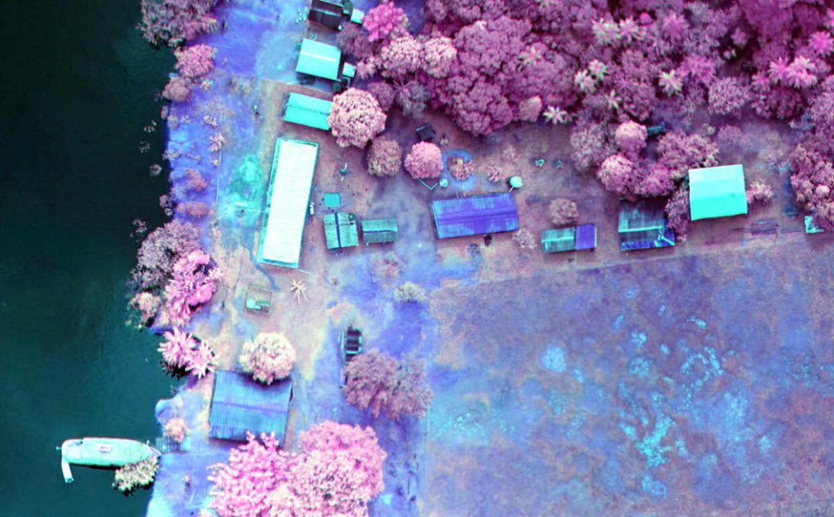 Imagem multiespectral da Comunidade Tapiira, localizada no rio Unini, Barcelos (AM). Foto: Geolab/FVA.