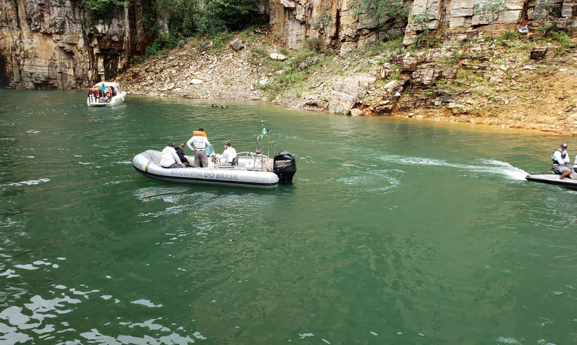 As operações haviam sido interrompidas às 19h de ontem (8) por falta de visibilidade. O desabamento ocorreu por volta das 12h30 desse sábado, quando um grande bloco de pedra se desprendeu do cânion do Lago de Furnas e caiu sobre pelo menos três lanchas. Duas embarcações afundaram.
