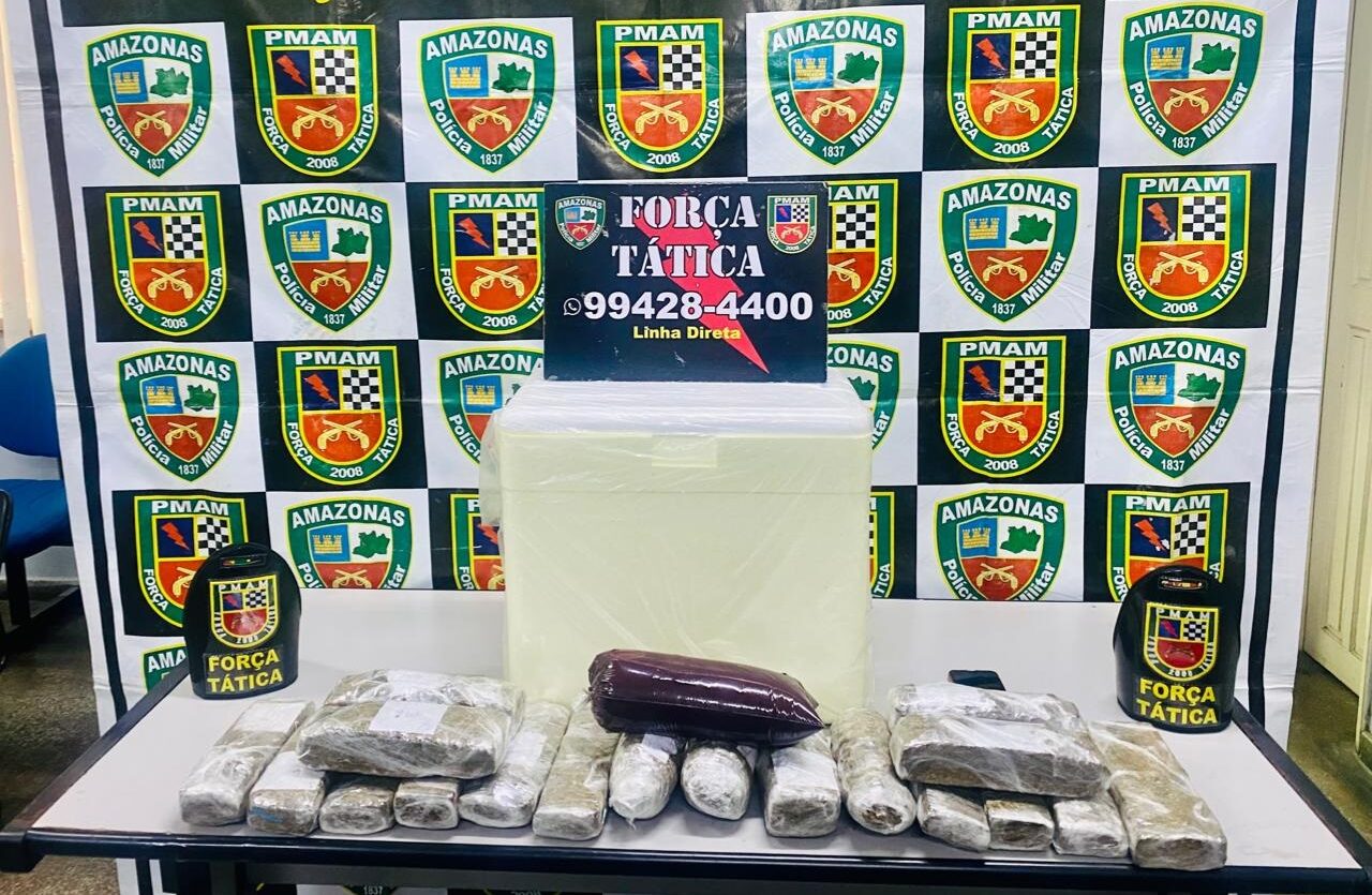Policiais militares da Força Tática detiveram em flagrante, na manhã desta quarta-feira, 17, na avenida Nepal, bairro Nova Cidade, zona norte de Manaus, um homem, de 36 anos, por tráfico de entorpecentes, os quais eram embalados em sacos de açaí e despachados para várias cidades do país. Na ação, foram apreendidos aproximadamente 10kg de drogas, divididos em 19 tabletes de substância com aspecto de maconha tipo Skunk.