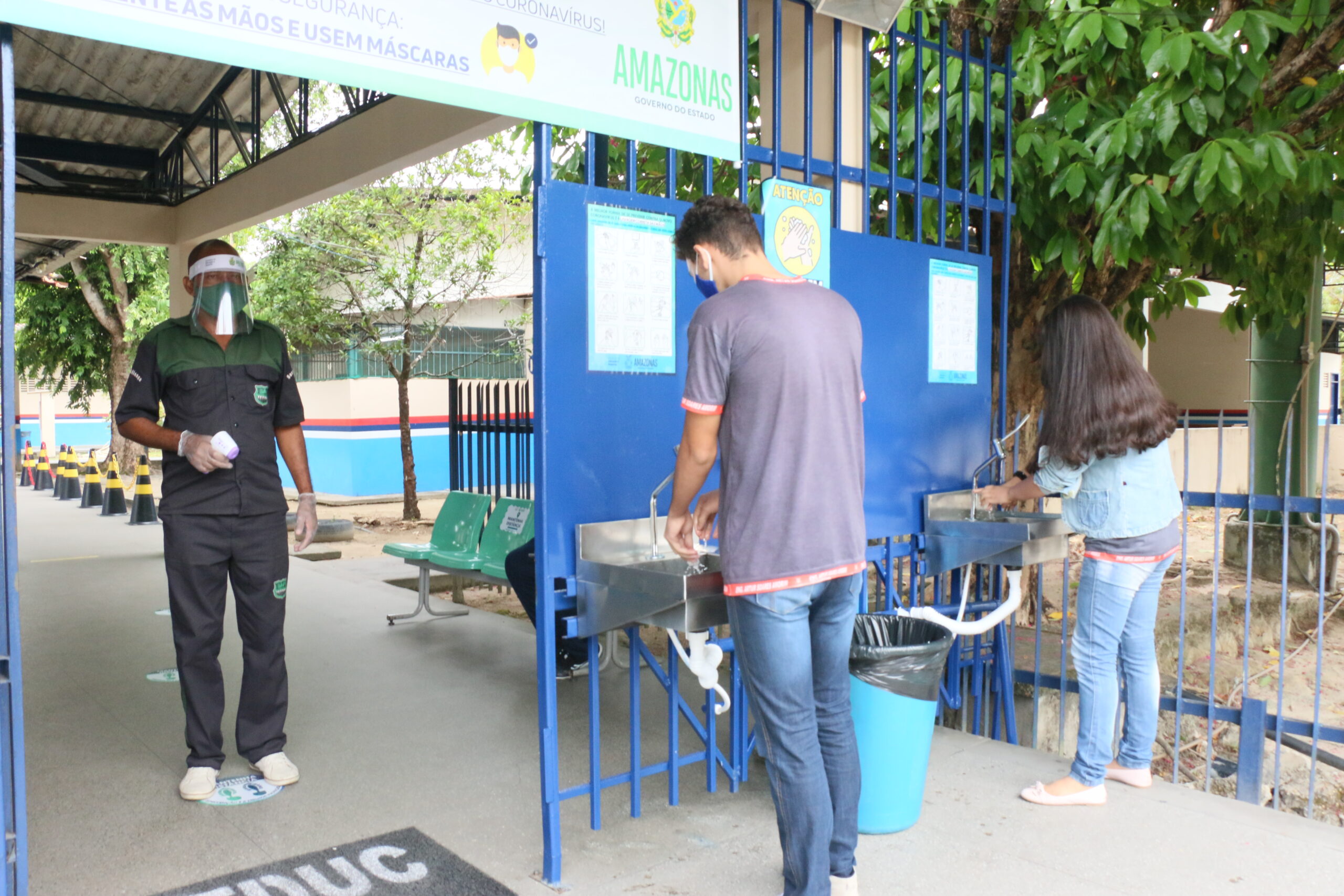 Durante a volta às escolas, gestores, professores, pedagogos e demais servidores permanecem atentos a uma série de protocolos de saúde que devem ser priorizados para o funcionamento das atividades em Manaus. Além disso, uma equipe acompanha todo o processo de entrada, permanência e saída da unidade de ensino, com intuito de orientar os estudantes sobre o uso de máscaras, distanciamento mínimo e outras medidas que são obrigatórias nas dependências da escola.