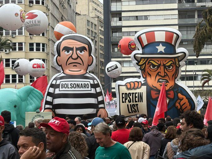 Apoiadores da esquerda no Brasil foram às ruas protestar contra as sanções americanas. Em agosto, o presidente dos EUA, Donald Trump, oficializou a tarifa de 50% para diversos produtos brasileiros. Além disso, o governo americano aplicou a Lei Magnitsky ao ministro Alexandre de Moraes e revogou os vistos de autoridades brasileiras. A manifestação também ocorre em meio ao julgamento de Jair Bolsonaro (PL) no STF pela trama golpista.
