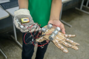 Vinícius criou uma luva que mexe os dedos utilizando papelão, alumínio, fios, barbante, baterias, entre outros. Com mais de 400 curtidas e pontuando a nota 8.8, o aluno conquistou o primeiro lugar em Manaus e ganhou um tablet. Para ele, a criação da mão foi bem difícil, mas ficou muito feliz com a conquista e agradeceu o apoio de todos.