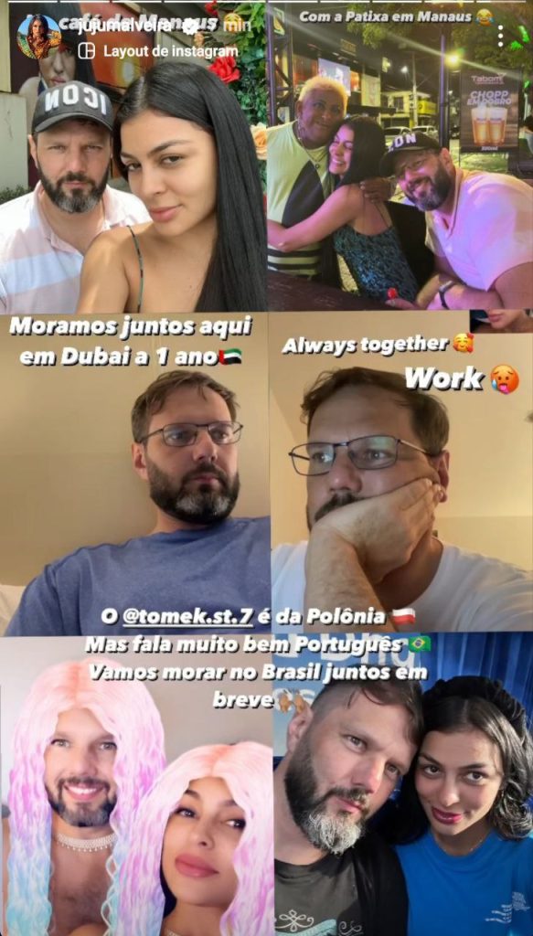 Depois disso a influencer afirmou que o pai do bebê é Tomek, um polonês, e que o casal está noivo e mora em Dubai há um ano, mas que vão morar no Brasil.