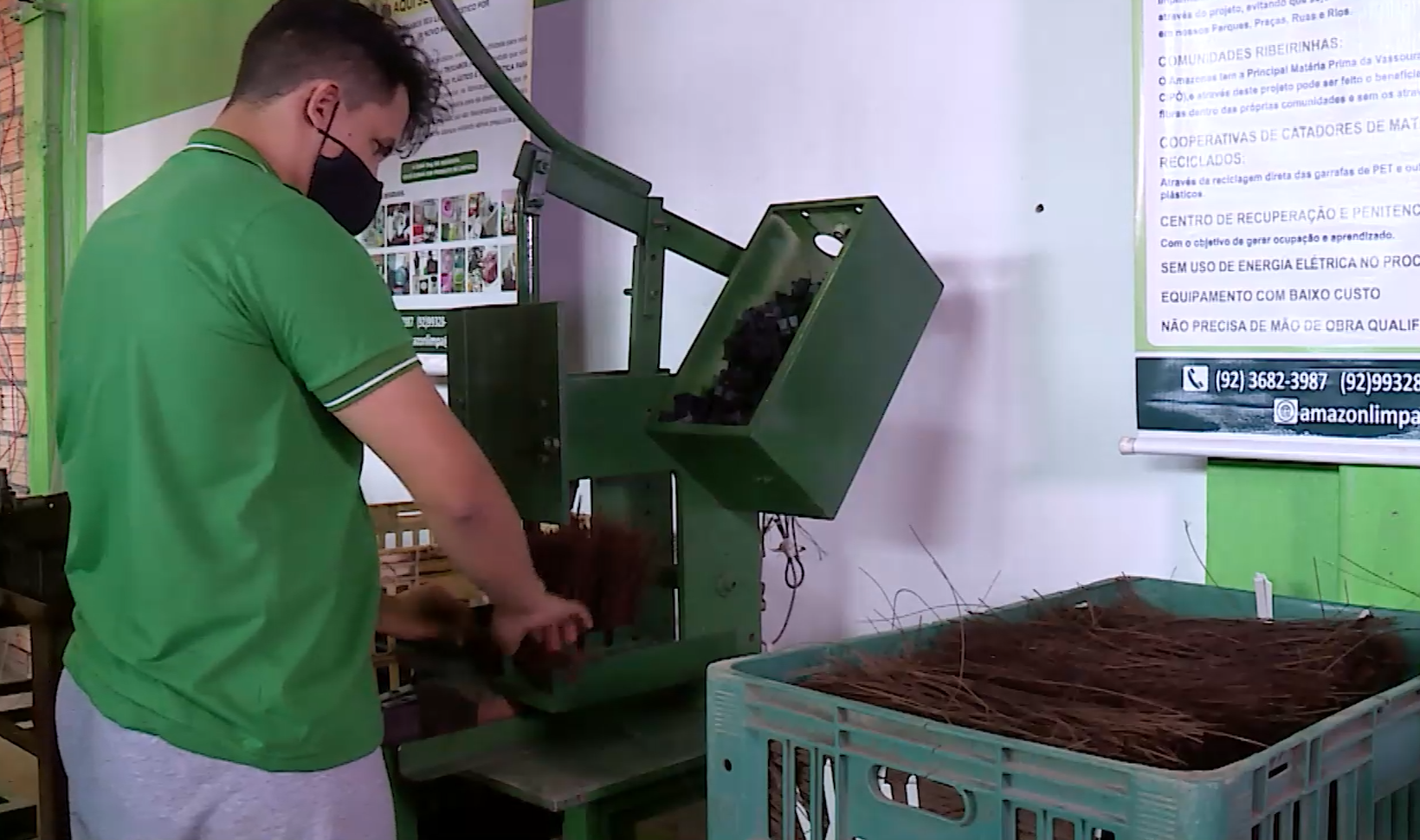 A máquina que produz as vassouras sustentáveis foi criada pelo empresário Mário Jonas Taumaturgo, proprietário da fábrica Amazon Limpa no ano de 2014.