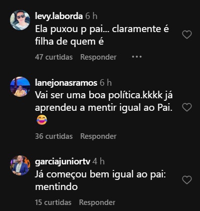 Nas redes sociais, a fala de Aryel gerou repercussão e foi alvo de comentários bem-humorados. No Instagram, o humorista Bruno Nogueira comentou: “Já começou como representante de sala, na quinta série kkk”. Já o internauta Garcia Júnior criticou: “Já começou bem igual ao pai: mentindo”.