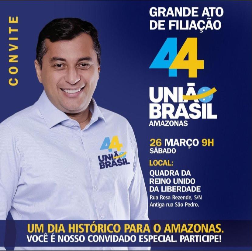 Com a confirmação da fusão e a eleição do diretório estadual, presidido por Pauderney Avelino, o União Brasil marcou para este sábado (26/03), às 09 horas, um grande evento de filiação de prefeitos e deputados, graças à articulação do governador Wilson Lima e seus auxiliares. O governador ingressou na legenda no início de março, tirando a possibilidade do ex-governador Amazonino Mendes entrar no partido.