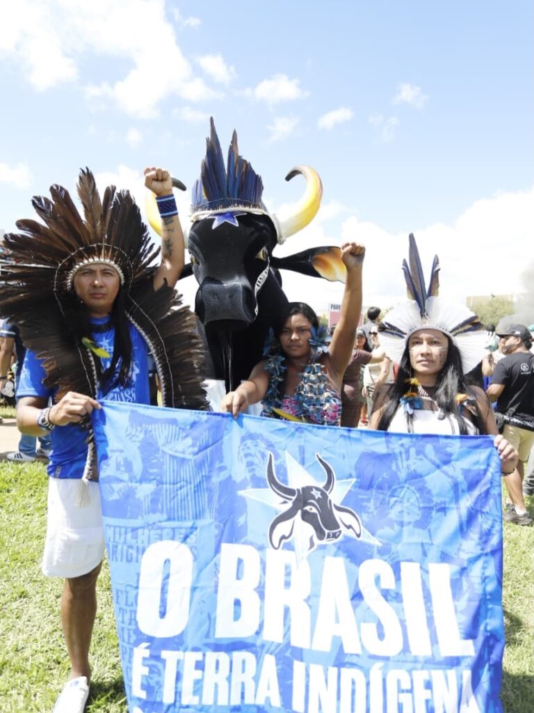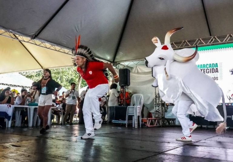 Os bois-bumbás Garantido e Caprichoso marcaram presença no Acampamento Terra Livre (ATL), realizado nessa terça-feira, 07, em Brasília (DF), somando forças às mobilizações em defesa dos direitos dos povos originários. Considerado o maior encontro indígena do país, o evento reúne cerca de 200 povos de diferentes regiões e promove marchas, debates e manifestações em torno da demarcação de terras, da proteção dos biomas e do enfrentamento às mudanças climáticas.