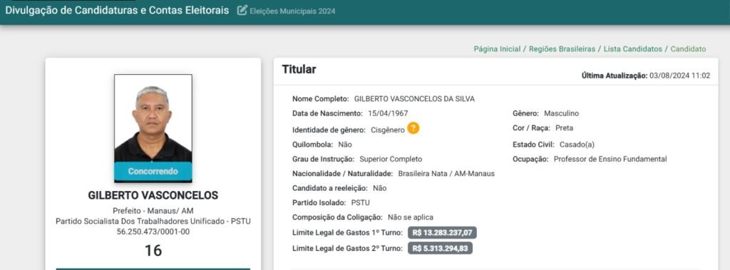 Vasconcelos, que tem uma longa trajetória de militância em defesa dos direitos dos trabalhadores, promete uma campanha focada em temas como a geração de emprego, melhoria nas condições de trabalho e ampliação dos serviços públicos. “Nossa candidatura é um grito dos trabalhadores que exigem mais direitos e uma Manaus mais justa e igualitária”, afirmou o candidato durante o registro.