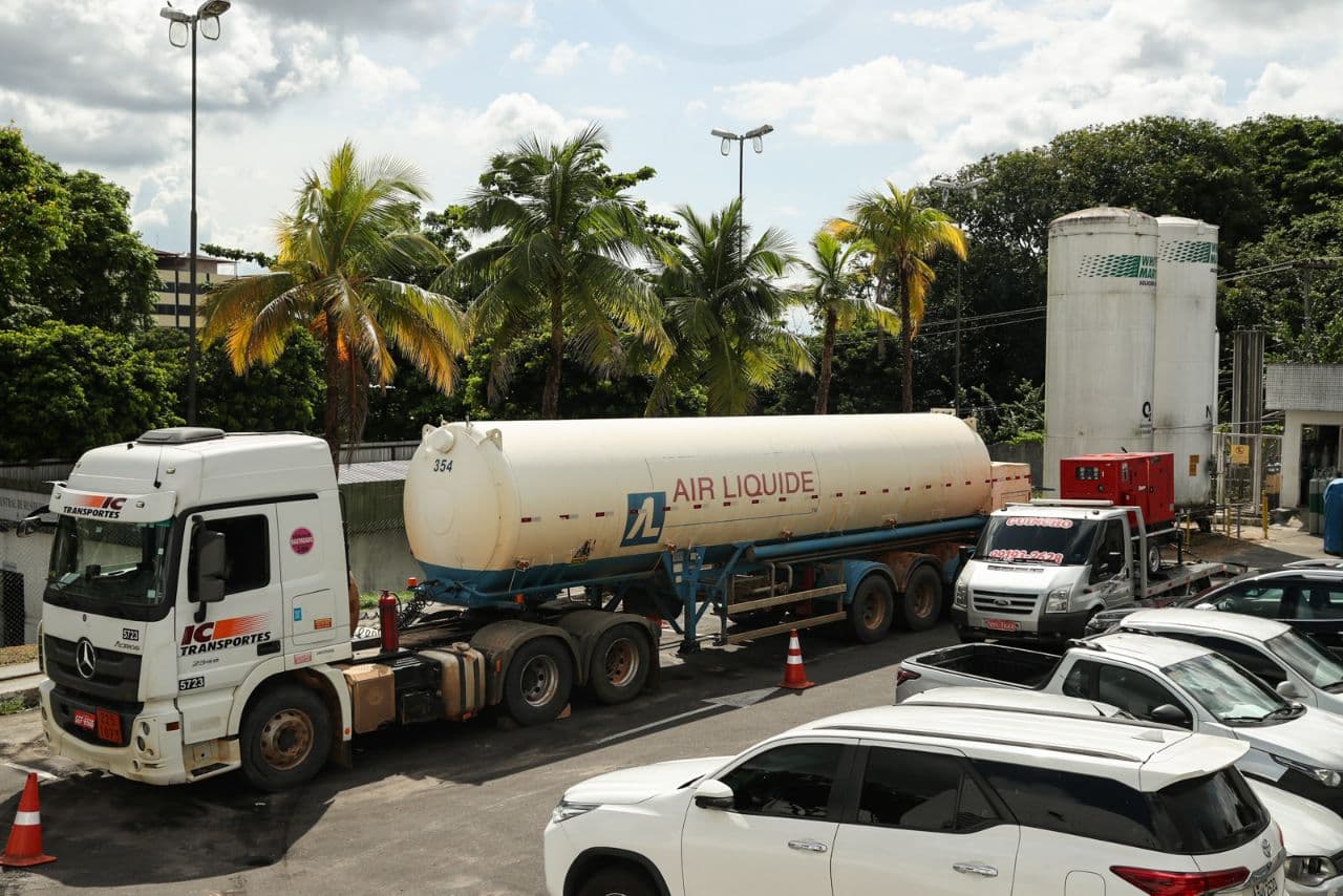 Entre janeiro e março de 2020, a demanda de oxigênio se manteve estável em 12,5 mil metros cúbicos por dia. Já entre abril e maio, durante o primeiro pico da pandemia, o consumo chegou a 30 mil metros cúbicos por dia, o que foi atendido pela empresa fornecedora do insumo.