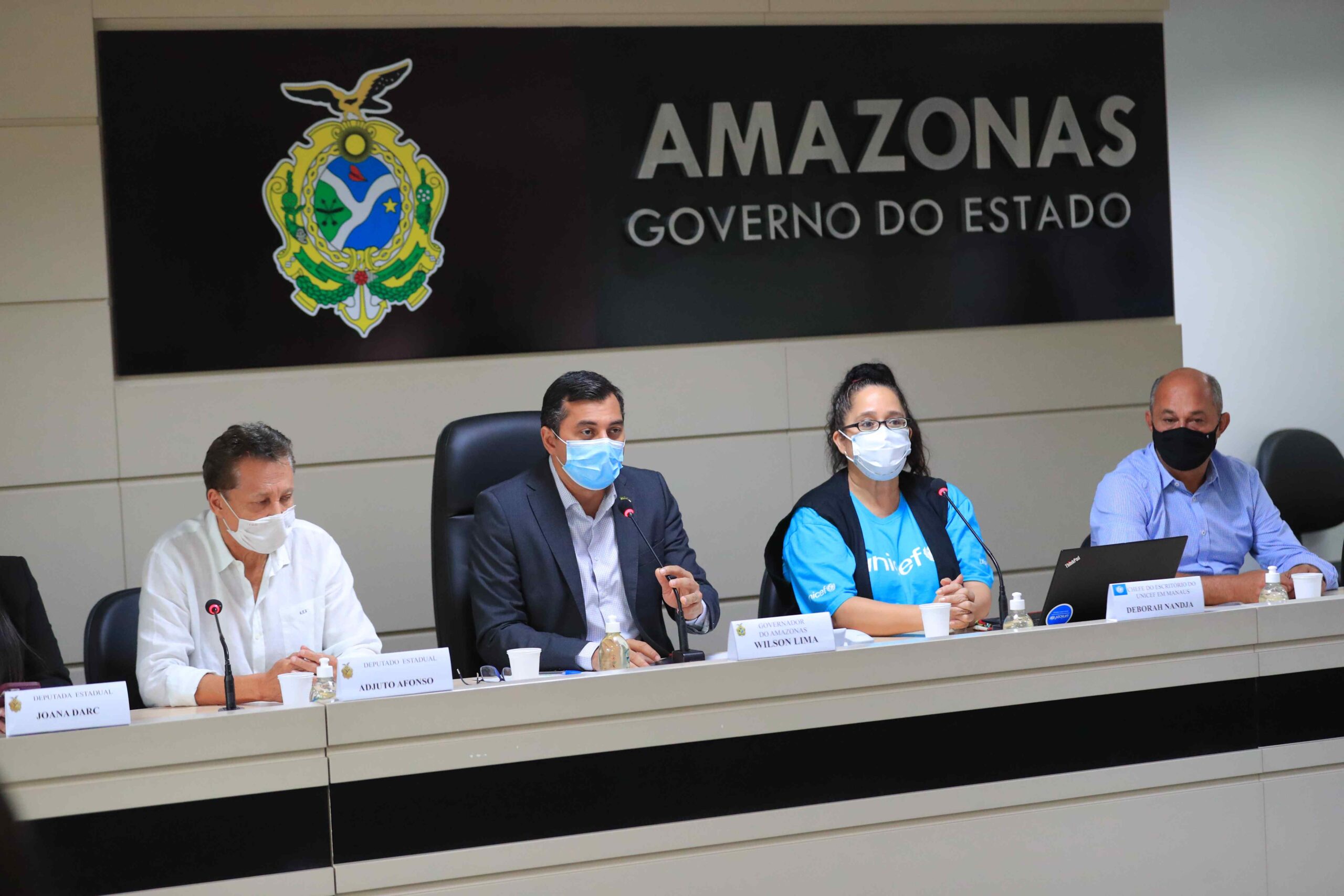 O governador Wilson Lima assinou, nesta segunda-feira (26), um protocolo de intenções com o Fundo das Nações Unidas para a Infância (Unicef) no Brasil, para fortalecer as políticas públicas voltadas a meninas e meninos, e que incentiva a adesão dos municípios à nova edição do Selo Unicef 2021-2024.