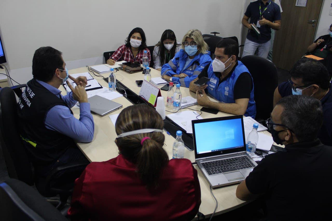 O encontro contou com a presença de representantes da Secretaria Municipal de Saúde (Semsa), além da equipe técnica da FVS-AM e forças de segurança.
