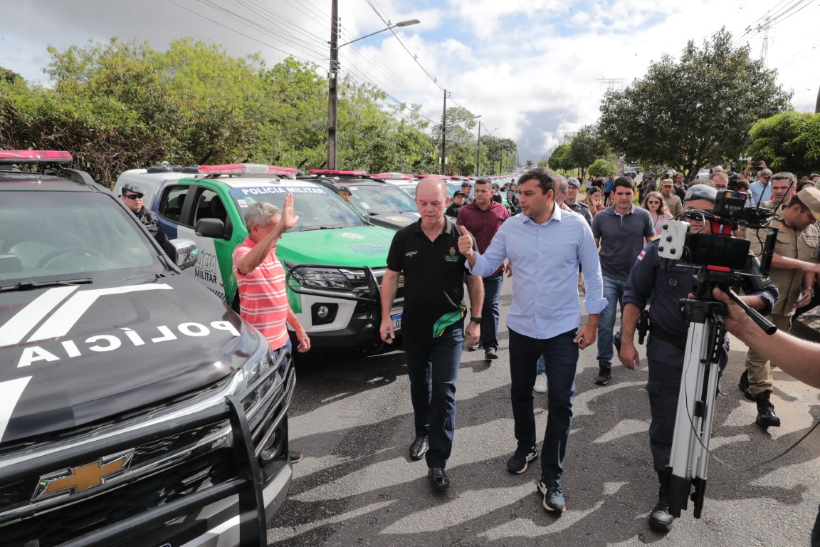 “Estamos entregando hoje os rádios comunicadores; há 10 anos não havia a troca desses equipamentos. Nós estamos entregando hoje mais um lote de viaturas. Hoje a polícia olha de cima para baixo para a bandidagem. Nunca se teve um armamento tão pesado quando se tem agora para enfrentar a criminalidade”, disse o governador sobre as entregas por meio do Amazonas Mais Seguro.