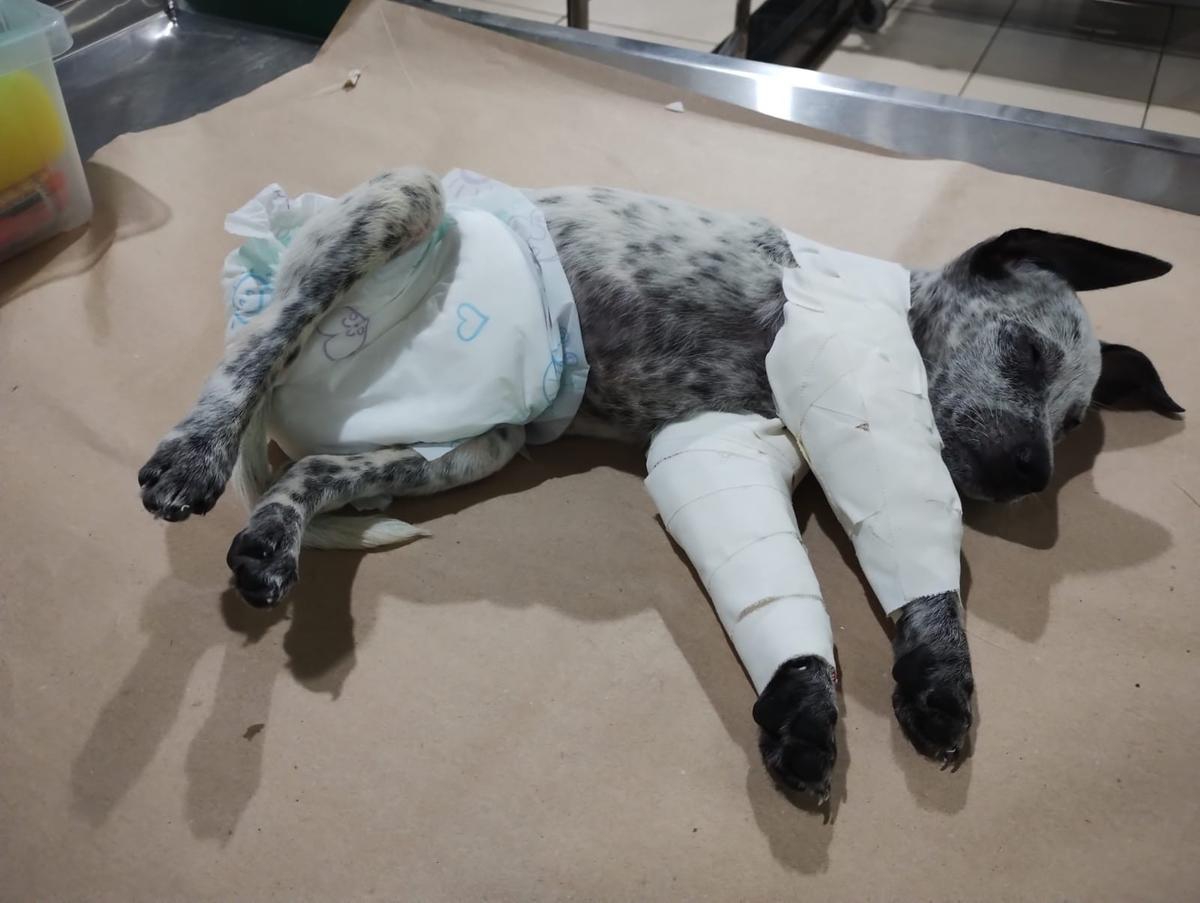 Ainda de acordo com a delegada, os investigadores da Especializada viram a situação do animal e decidiram fazer uma vaquinha para custear o tratamento do cachorro que estava tremendo de dor devido às fraturas.