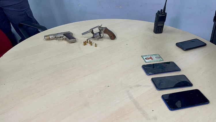 Com o suspeito, a polícia apreendeu quatro celulares, uma arma de fogo e um simulacro. O material foi entregue no 19º Distrito Integrado de Polícia (DIP), onde o caso foi registrado.