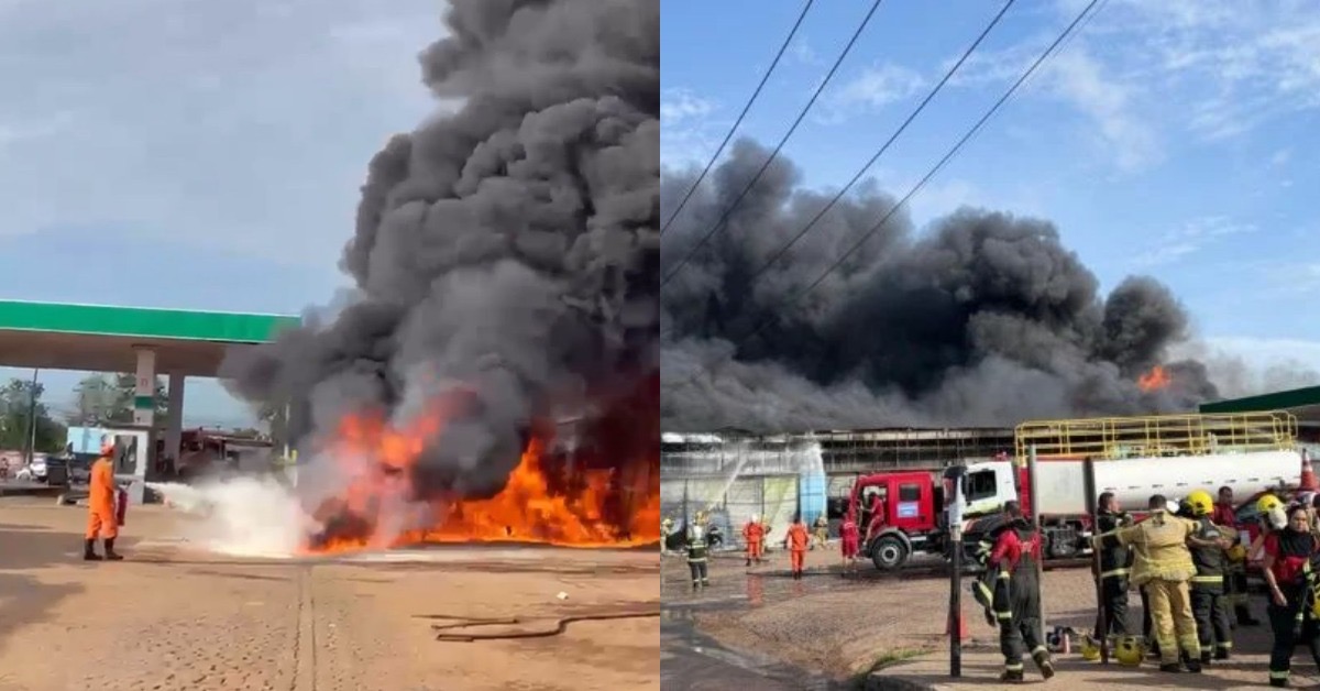 Ao chegar, os bombeiros iniciaram o combate ao fogo com mangueiras e isolaram a área para garantir a segurança. A fumaça do incêndio pode ser vista de longe.