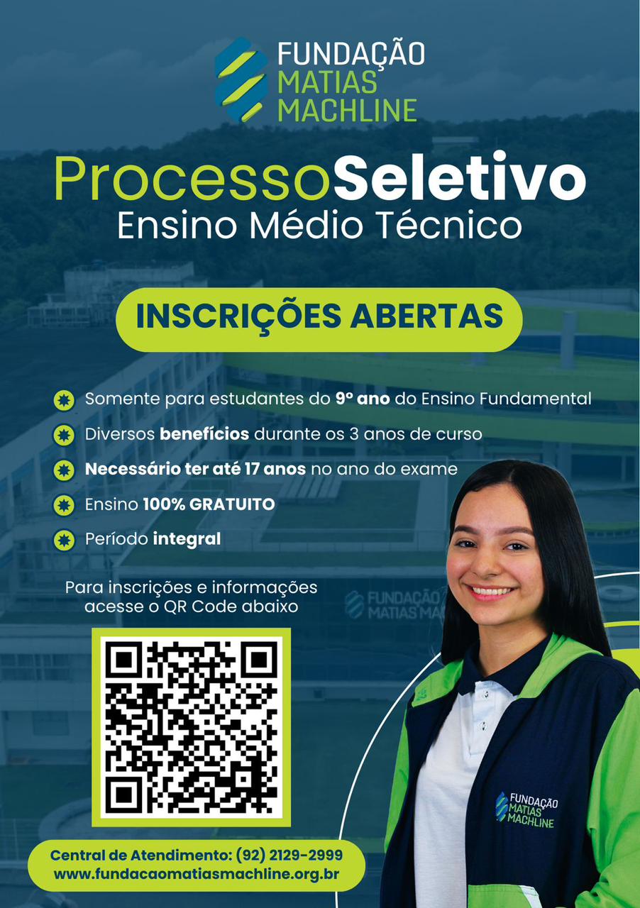 A Fundação Matias Machline estará até o dia 10 de novembro com inscrições abertas para o Processo Seletivo de Ensino Médio Técnico em 2024. No total, serão ofertadas 552 vagas para alunos que vão concluir o 9º ano do Ensino Fundamental e possuírem até 17 anos completos no ano de 2023.