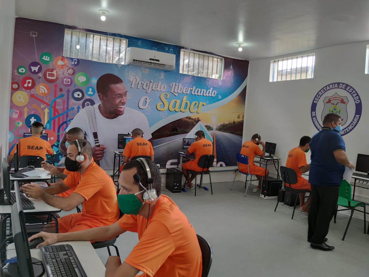Nos CDPMs 1 e 2 foram montadas duas salas de aula equipadas com computadores e sistemas de segurança e controle de navegação, em cada unidade. Trabalho conjunto da Seap com a empresa cogestora New Life Gestão Prisional.
