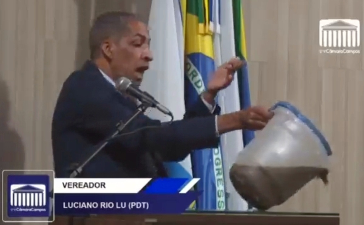 O vereador Luciano Rio Lu (PDT) está viralizando nas redes sociais após usar um balde com “cocô” para protestar e derramar o conteúdo no plenário da Câmara dos Vereadores de Campos durante sessão realizada na última terça-feira (20).