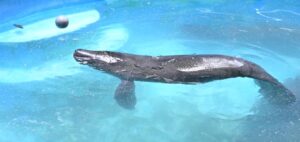 A bióloga da Ampa também explicou que, gradualmente, a alimentação do filhote será modificada, passando de leite para vegetais, à medida que ele se adapta ao novo ambiente. Inicialmente, ele ficará nas piscinas do Inpa, mas, conforme for crescendo, será transferido para tanques de exposição, onde poderá ser visitado.