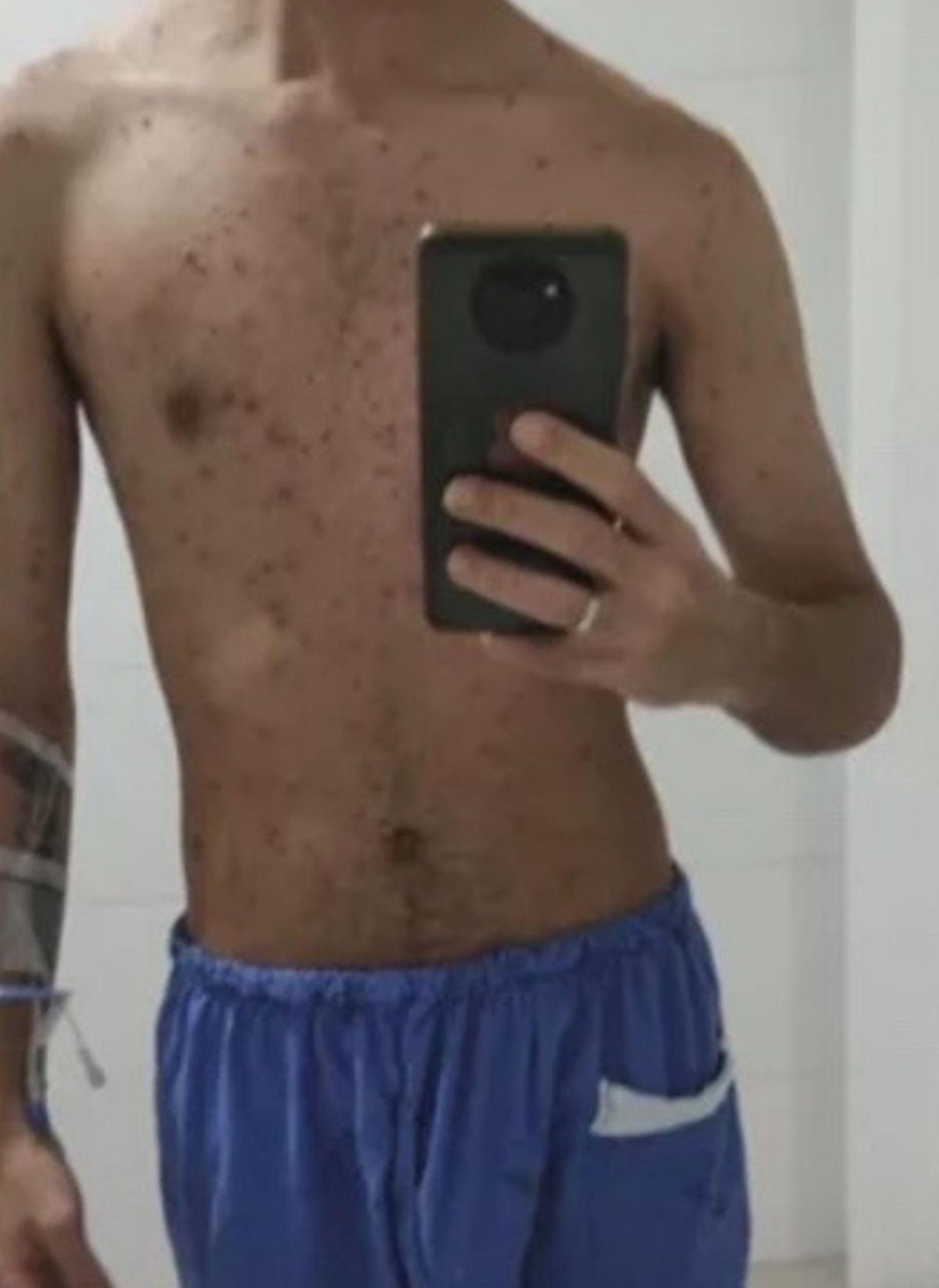 Um jovem de 19 anos, que recebeu o diagnóstico de varíola dos macacos (Monkeypox), que está internado no no Hospital Emílio Ribas, em São Paulo, compartilhou uma foto onde mostra mais de 200 lesões espalhadas pelo corpo que foram causadas pela doença.