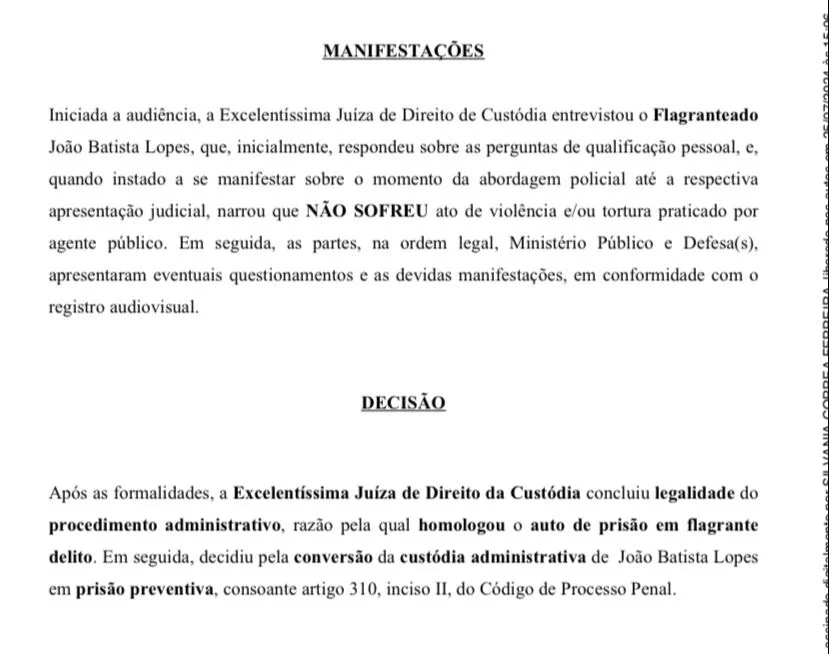 João Batista Lopes será levado para um presídio e ficará à disposição da Justiça.