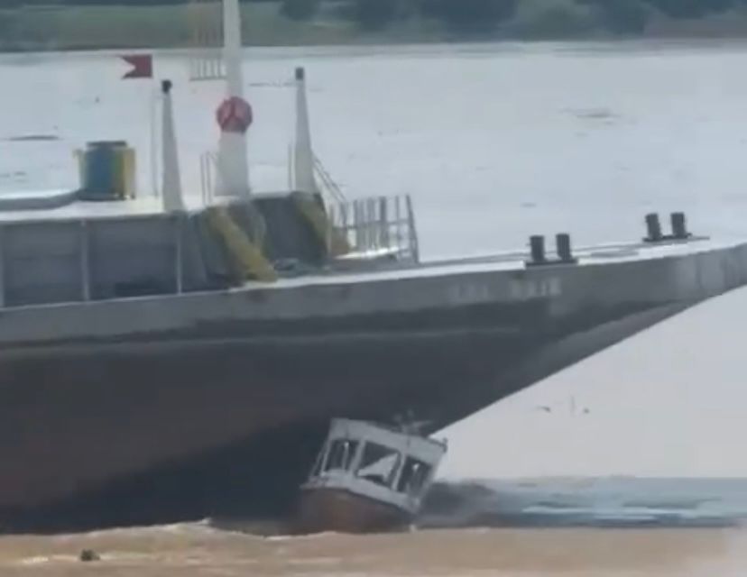 Uma lancha foi destruída por uma balsa no rio Solimões, em Codajás, no interior do Amazonas, na segunda-feira (30). Dois homens estavam a bordo da embarcação quando ela apresentou uma pane e foi esmagada por uma embarcação maior. Vídeos compartilhados nas redes sociais mostram o momento exato do acidente.
