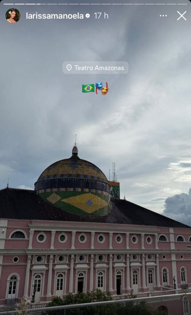 A artista ficou hospedada em um hotel com vista para o Teatro Amazonas, onde realizou alguns trabalhos para a marca e compartilhou a experiência em suas redes sociais.