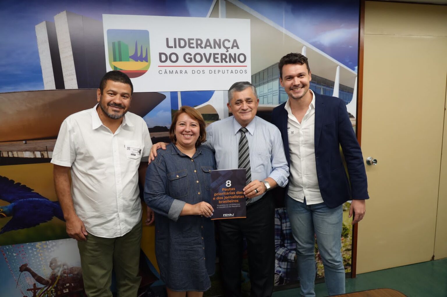 Participaram da reunião com o líder do governo, a presidenta da entidade, Samira de Castro, o primeiro-secretário Moacy Neves (presidente do Sinjorba) e o secretário de Mobilização, Rafael Mesquita (presidente do Sindjorce). O encontro com Guimarães foi parte de uma extensa agenda da FENAJ em Brasília, nesta segunda (6) e terça (7), para buscar apoio do governo e do legislativo às oito pautas prioritárias da categoria.