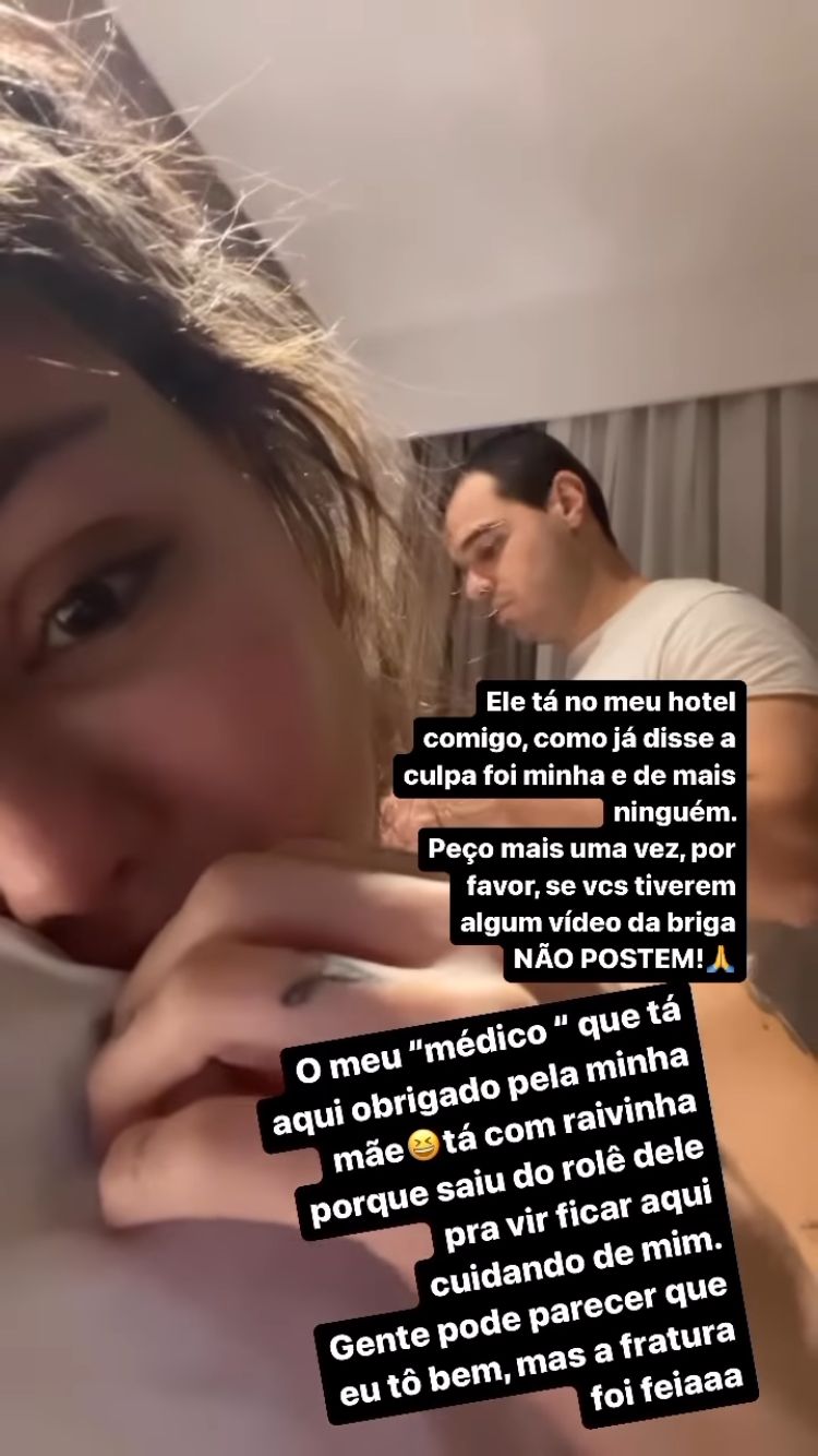 De acordo com a ex-Fazenda, nos primeiros pronunciamentos ela estava com vergonha e contou que havia caído, porém revelou tudo aos seguidores nas redes sociais.