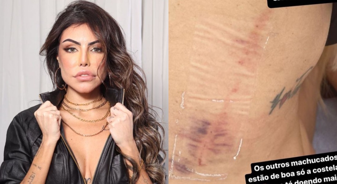 Ela apontou que não se lembra como ficou a outra mulher envolvida na briga e quem seria a mesma,pois estava alcoolizada. Liziane compartilhou uma foto do hematoma na região das costelas