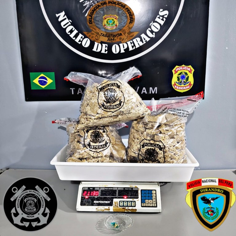 O Grupo Especial de Polícia Marítima da Polícia Federal (GPOM/PF) apreendeu 21.130 quilos de pasta base de cocaína e prendeu quatro homens, sem identidades reveladas, no último sábado (14), no município de Tabatinga, no interior do Amazonas.