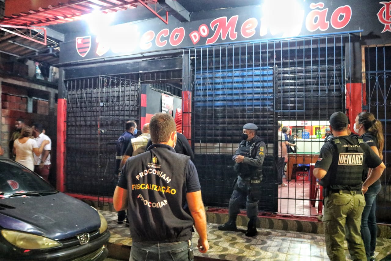 Na sexta-feira, foram fechados o bar do Dico, bar do Flamengo, boteco do Geraldo, bar do Ceará, bar e mercearia da Amizade, Adega Sport Bar, Fla Chopp Sujo, Las Vegas Beer e bar A Toca, nos bairros São José Operário, Gilberto Mestrinho, Jorge Teixeira, Cidade de Deus, Novo Israel e Cidade Nova.