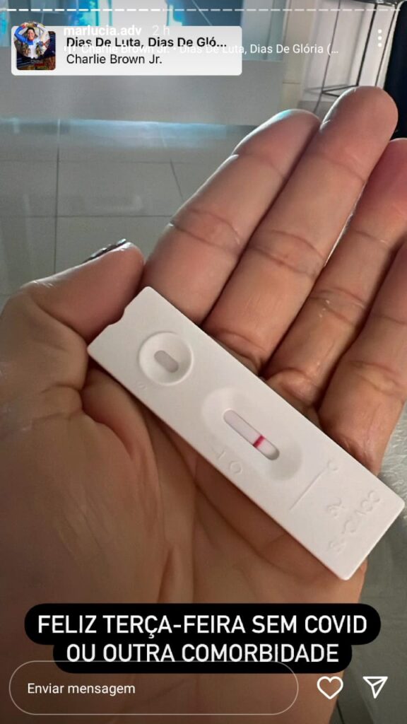 Já no início da tarde de hoje, Marlucia compartilhou foto do seu teste negativo para Covid-19, comemorando por poder estar recuperada e mandou uma indireta: “sem Covid ou outra comorbidade”, alegando que fez exames recentes e que nenhum tipo de câncer foi detectado em seu corpo.