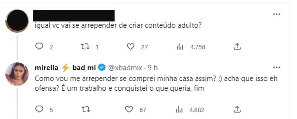 “Igual você vai se arrepender de criar conteúdo adulto?”, questiono um usuário.