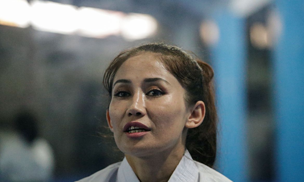 A campeã afegã de caratê Meena Asadi golpeia um saco de pancada como parte da rotina de treinamento, mas teme que as mulheres atletas de sua terra natal possam já ter perdido a luta para competir, agora que o Talibã voltou ao poder.