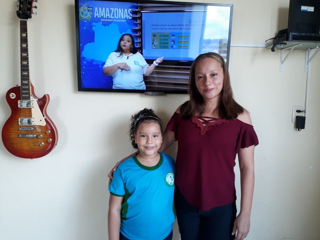 Quando as aulas presenciais foram suspensas na rede pública estadual, a estudante Clara Pires, de 6 anos, estava iniciando o processo de alfabetização na Escola Estadual Benício Leão, em Manaus. Agora, depois de três meses acompanhando o programa “Aula em Casa”, ela já tem certo domínio da escrita, leitura e faz questão de acompanhar todos os conteúdos. “Eu gosto!”, afirma.